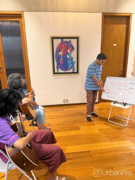 I have been teaching guitar since 2012. I help students learn basics if guitar that includes learning chords, rhythms and scales. Post which we move in to learning more advanced stuff that includes staff notation reading and if needed preparing for certification exams.